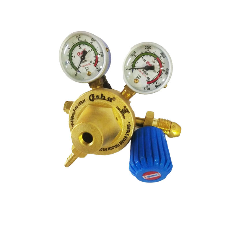Single Stage Double Meter Helium Regulator (Eco Series) is designed for installation on tanks or on cylinders with an inlet pressure of 0-400 Bar, and outlet/working pressure of 0-10 Bar. The valve comes with overpressure protection with the Safety pressure of 12 Bar.